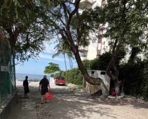 We try to walk daily or semi-daily. I don’t think that I would ever keep up with Lew, who likes long walks of several miles around town, but every other day or so, he hauls me, challenges me, pushes me, every so gently, to go someplace, to “check it out.” We usually set a goal. Yesterday, we aimed to find a blouse (camisa) at a shopping center. Two days previously, we aimed ourselves toward a beach, whose access was hidden between upscale condominiums. I will post some of those photos today just for fun and a graphic description.