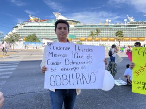 I took photos of the demonstrators, who were gathering around the theme of Justice for Clarisa Rodriguez, a young woman who had died without proper care, while the wealthy drunk driver had been plucked up and hidden away and given no moral or legal responsibility for the accident by the authorities. I spoke with the young woman’s cousin, and the family’s signs indicated that they thought a corrupt government and $$ were at the root of things. People around her felt sympathy for her, and the protest grew. The police remained stoic.